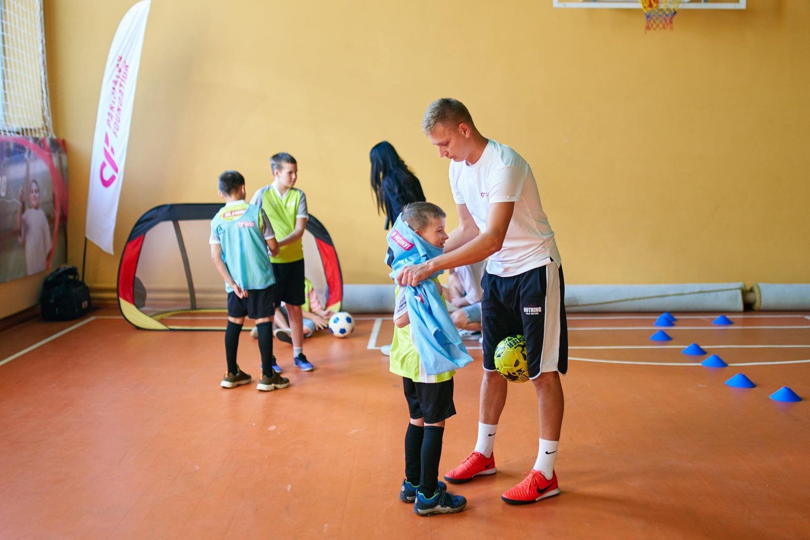 Andriy Skumin is a young and always smiling coach of the Yes, I can program that became possible thanks to the cooperation of FC Podil children school and Podil district Sports for All center. The program helps children with disabilities engage in various sports with the help of experienced coaches. This project is an essential part of Ukrainian society because it draws attention to issues related to ensuring barrier-free access to sports.