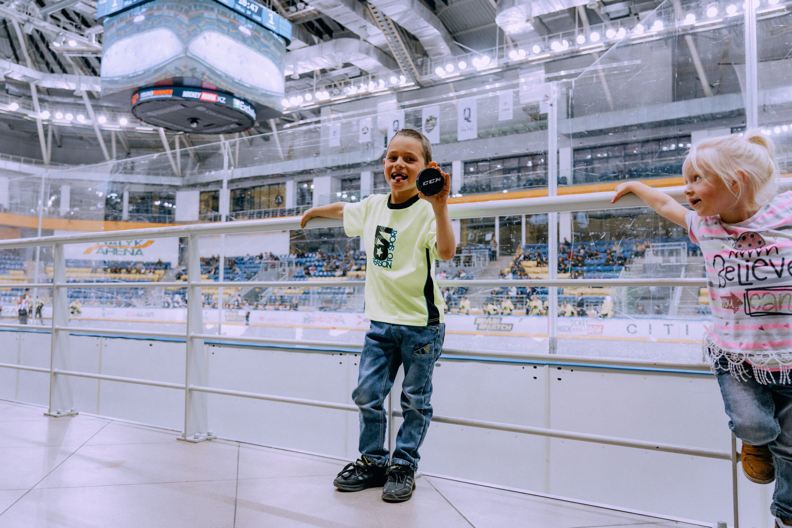 Деякі вболівальники отримали не тільки яскраві емоції, а й унікальний шанс спіймати шайбу, що вилетіла з арени.