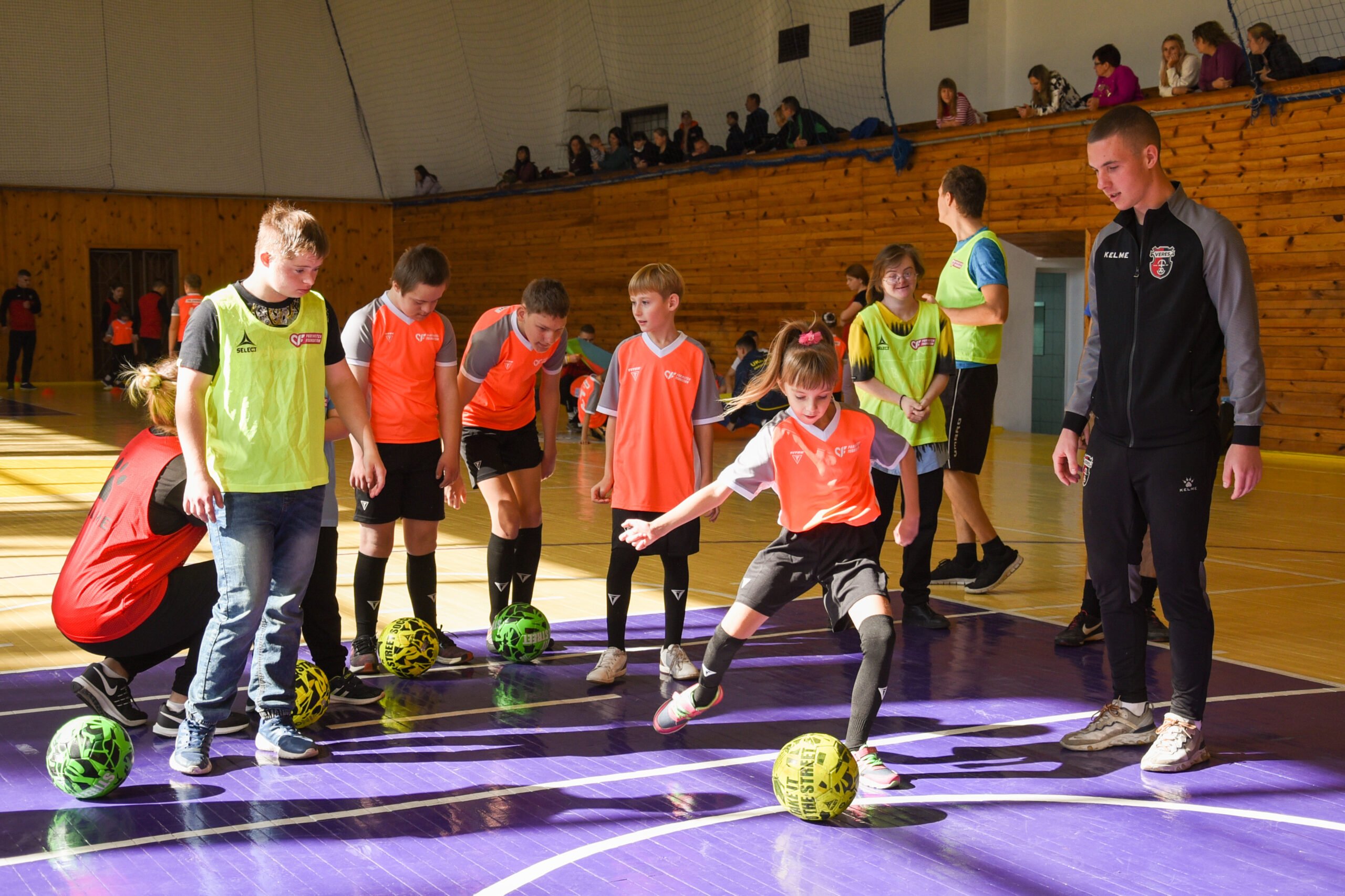 3 жовтня у спортивному комплексі Волинського національного університету імені Лесі Українки відбулося чергове відкрите інклюзивне тренування з футболу. У ньому взяли участь 25 дітей з інвалідністю, а також представники футбольного клубу “Верес”, футзальний клуб “Любарт” і паралімпієць Ярослав Окапінський.